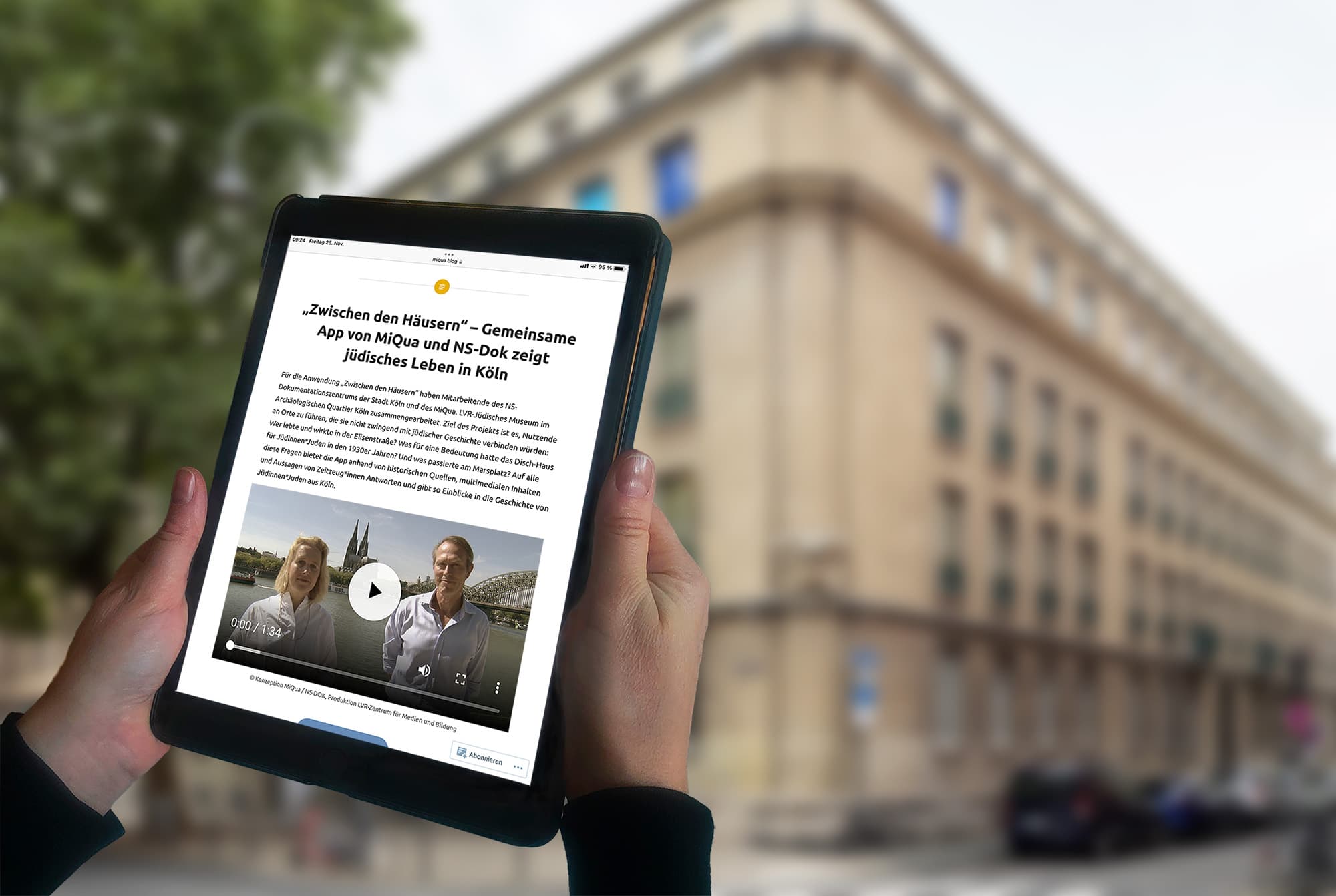 Die App „Zwischen den Häusern“ ist Teil des Ausstellungsprojektes des MiQua. LVR-Jüdisches Museum im Archäologischen Quartier Köln. Die GPS-basierte Route verbindet das NS-Dokumentationszentrum der Stadt Köln und das neu entstehende Museum und bietet die Möglichkeit, an verschiedenen Stationspunkten und authentischen Orten jüdische Geschichte interaktiv zu erfahren.